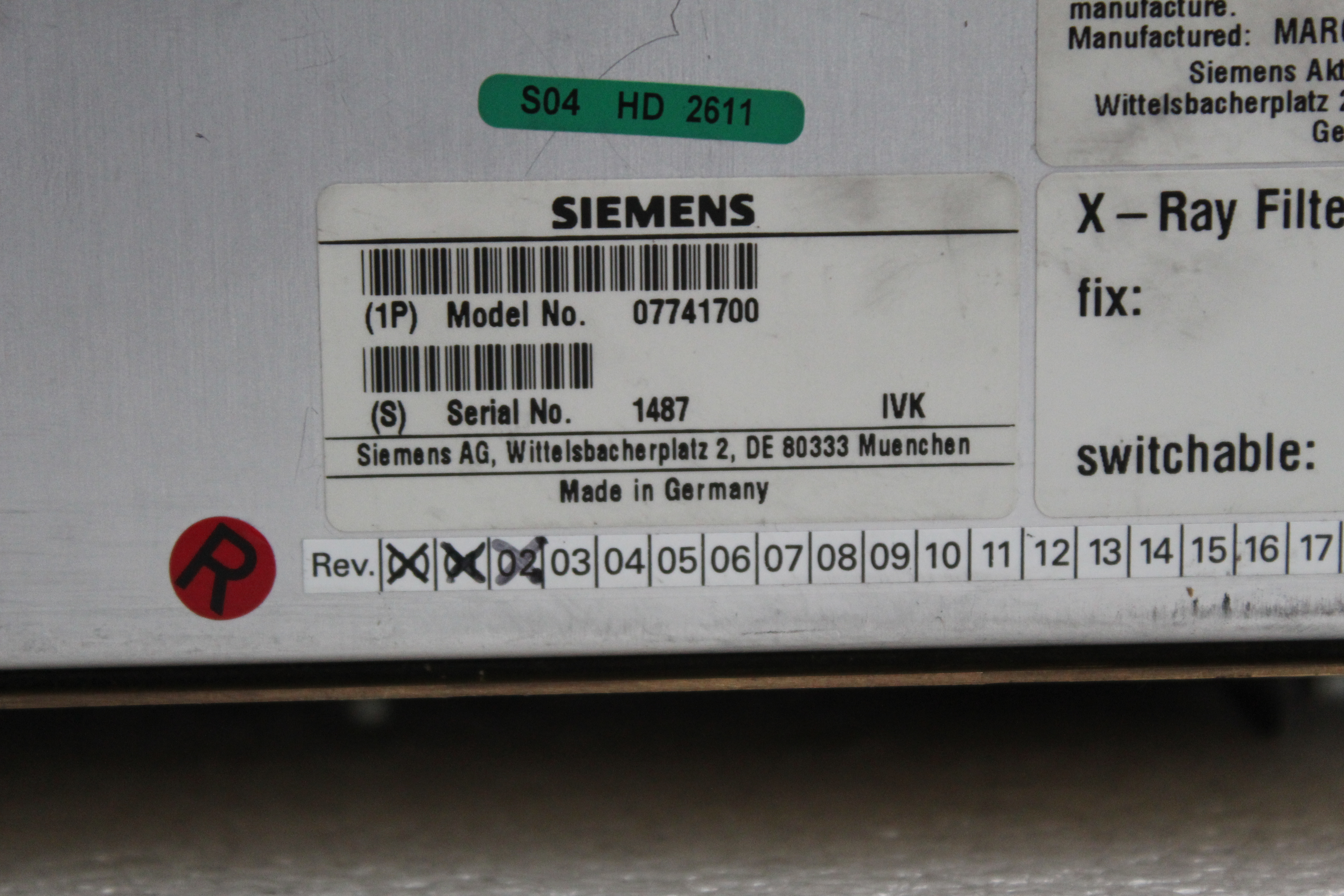 Siemen Tube 07741700 Collimator